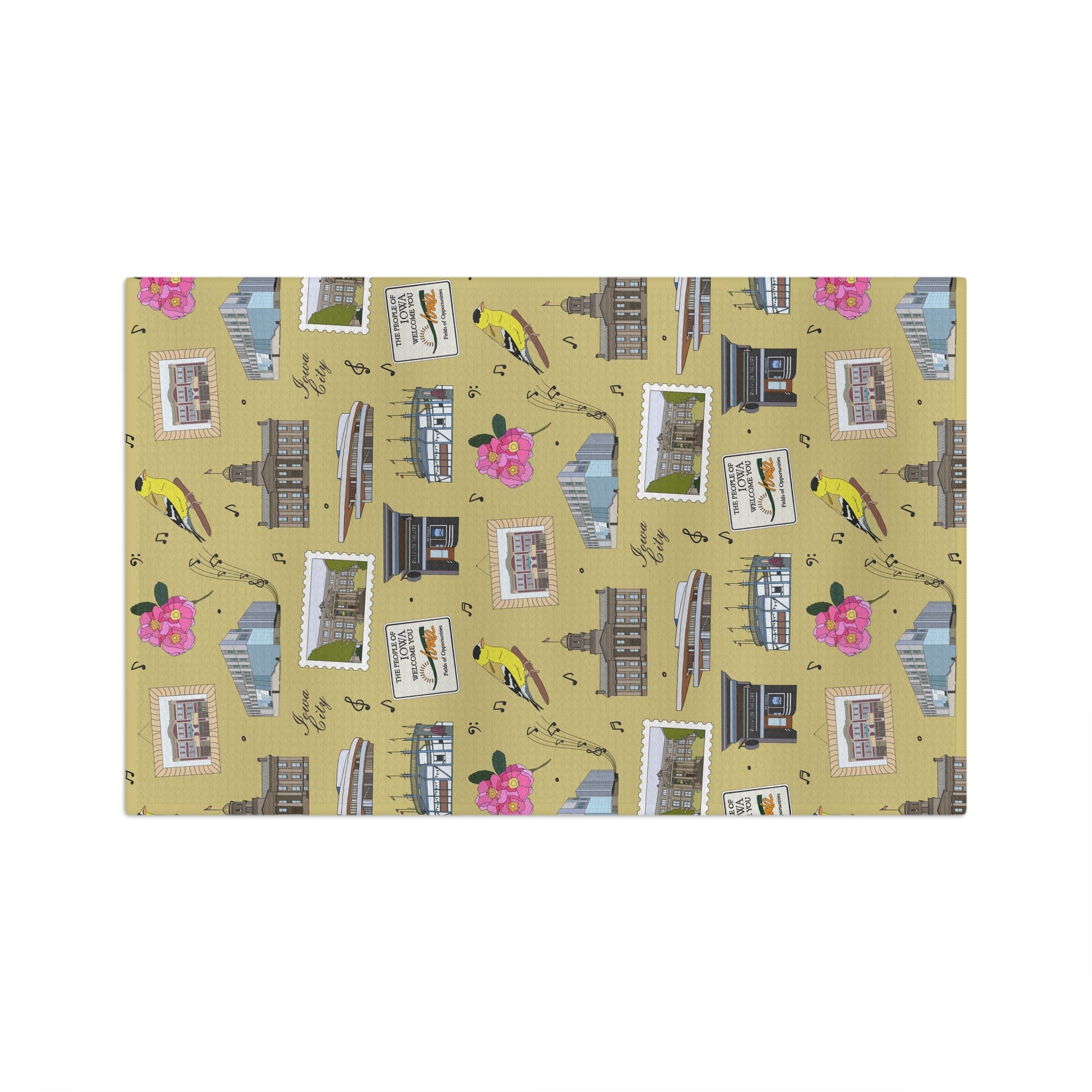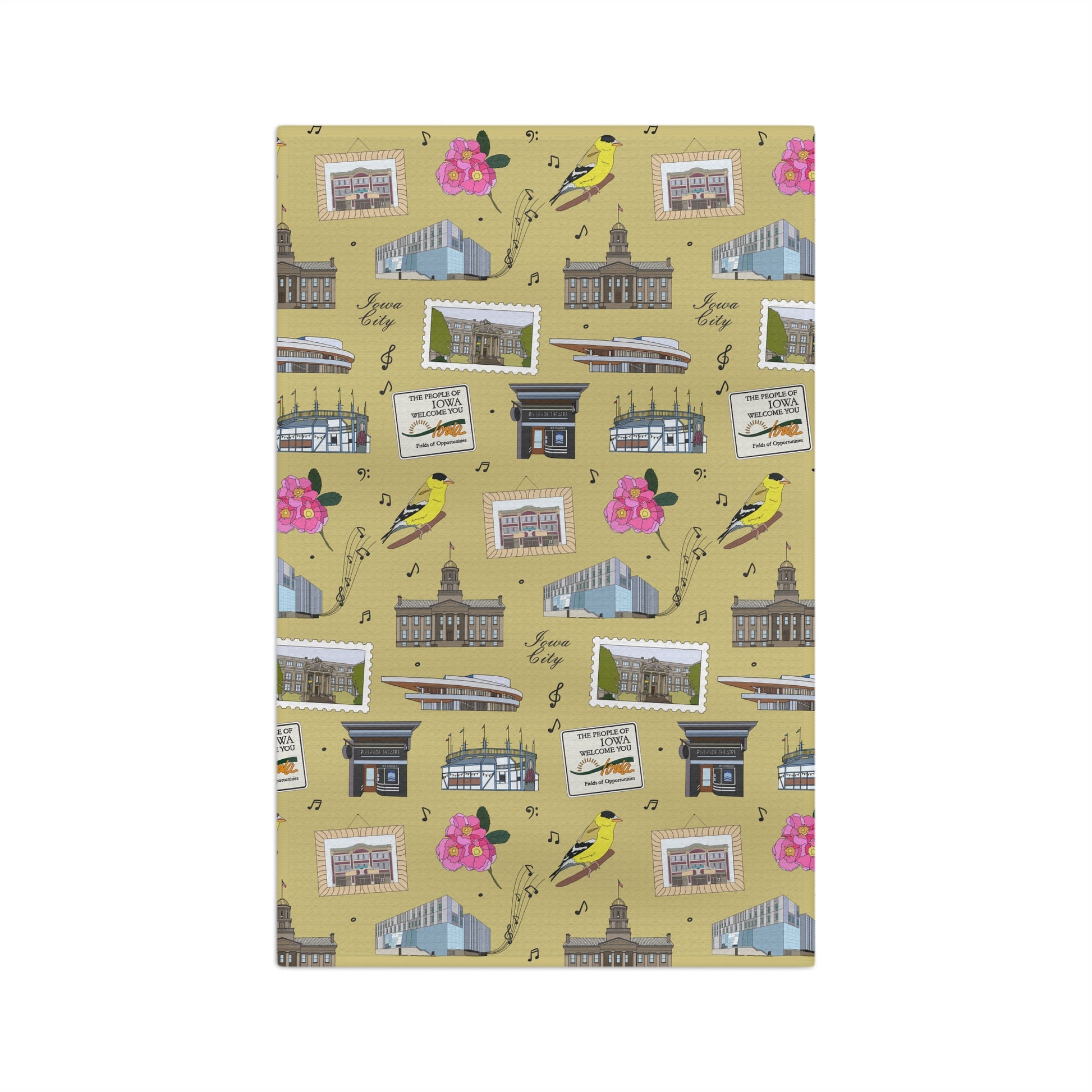 Kitchen Towel with Iowa City, Iowa IA in mustard