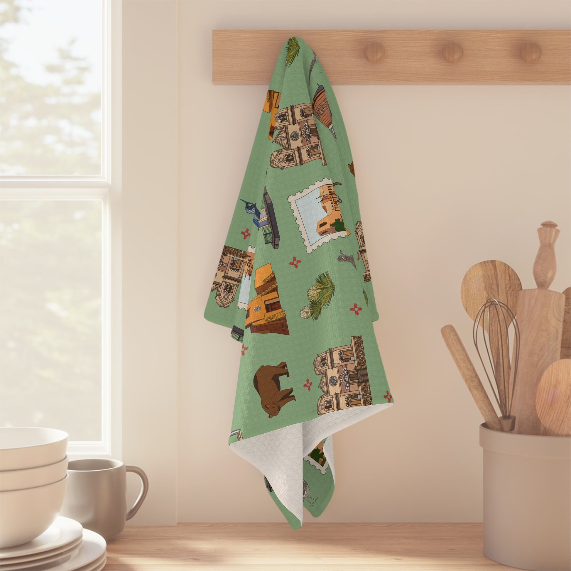 Kitchen Towel with Santa Fe, New Mexico NM in green tea
