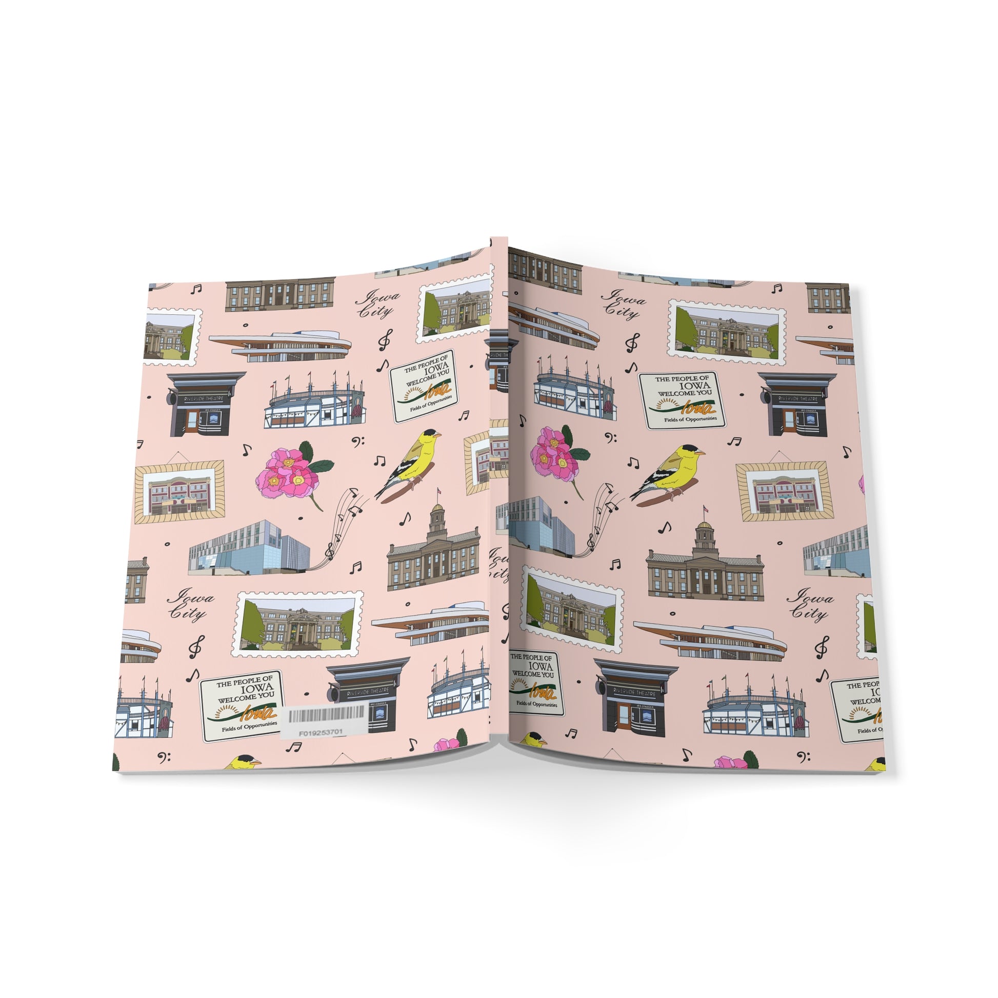 Paperback notebook with Iowa City, Iowa IA landmarks in blush 150 lined pages