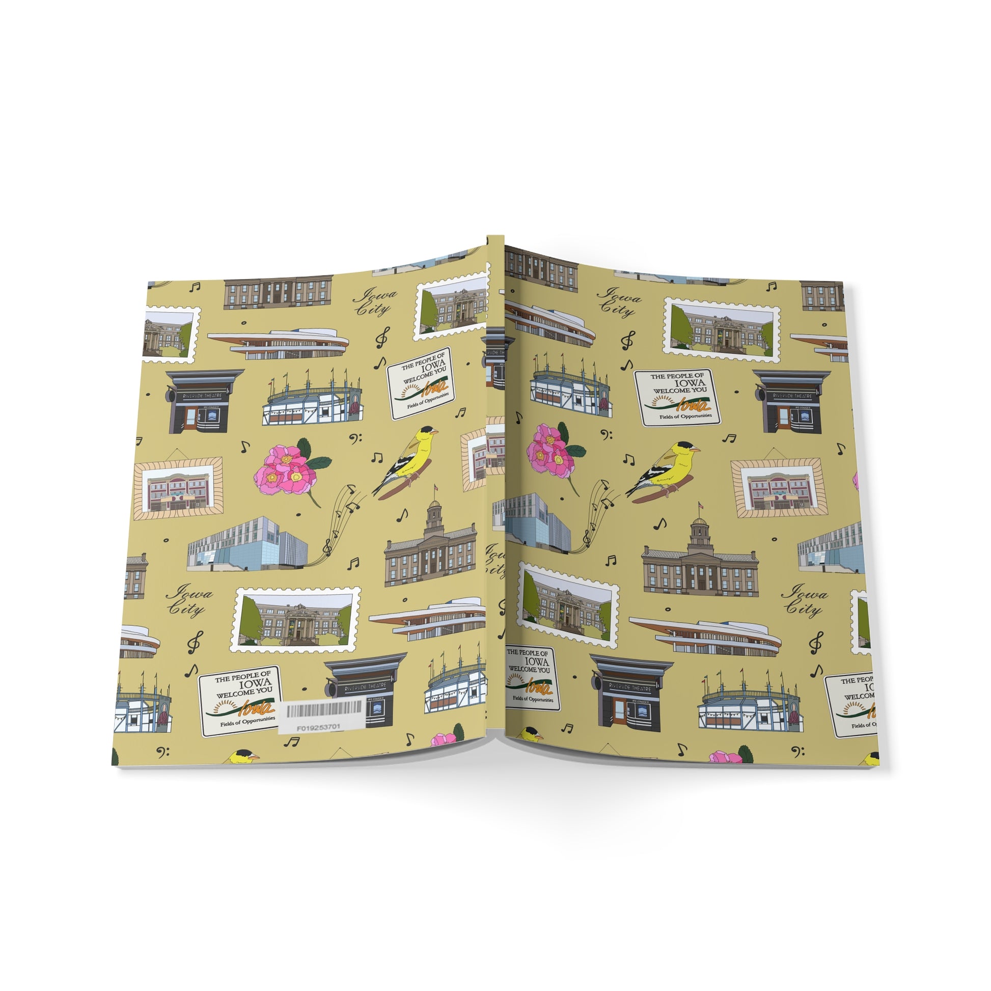Paperback notebook with Iowa City, Iowa IA landmarks in mustard 150 lined pages